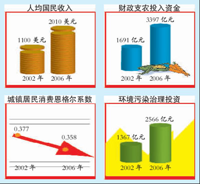 建設(shè)資源節(jié)約型和環(huán)境友好型社會(huì)開始起步?!笆晃濉币?guī)劃綱要首次分出“預(yù)期性指標(biāo)”和“約束性指標(biāo)”,節(jié)能減排成了重要任務(wù)。綱要明確規(guī)定:2006至2010年單位GDP能耗降低20%左右,主要污染物排放總量減少10%。去年,單位GDP能耗實(shí)現(xiàn)3年來的首次“掉頭向下”,今年上半年同比下降了2.8%。與此同時(shí),企業(yè)利潤連續(xù)4年保持20%以上的增長速度。