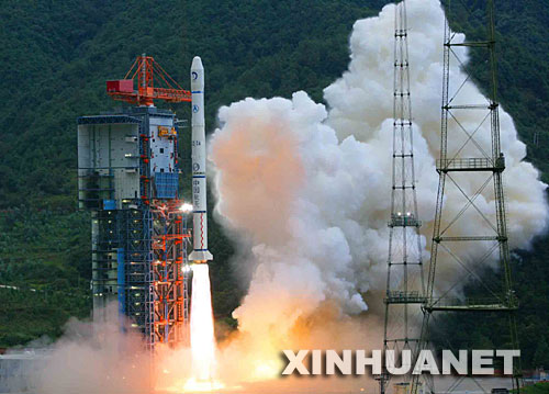 10月24日18時(shí)05分,搭載著我國(guó)首顆探月衛(wèi)星嫦娥一號(hào)的長(zhǎng)征三號(hào)甲運(yùn)載火箭在西昌衛(wèi)星發(fā)射中心三號(hào)塔架點(diǎn)火發(fā)射。新華社記者 李剛 攝
