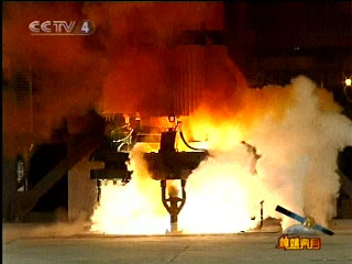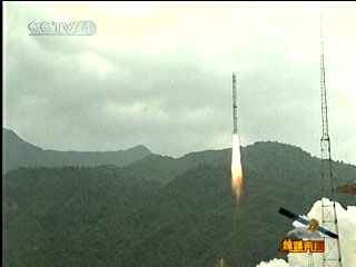 10月24日18時(shí)05分,搭載著我國(guó)首顆探月衛(wèi)星嫦娥一號(hào)的長(zhǎng)征三號(hào)甲運(yùn)載火箭在西昌衛(wèi)星發(fā)射中心三號(hào)塔架點(diǎn)火發(fā)射。新華社記者 王建民 攝