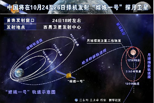 圖表:中國將在10月24至26日擇機發(fā)射“嫦娥一號”探月衛(wèi)星 新華社發(fā)