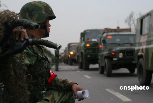 機動途中開展化學偵察。10月28日,鐵拳-2007機步師實兵檢驗性演習部隊在機動途中展開防持久毒劑襲擊,化學偵察,道路消毒,裝備消毒,人員消毒等科目演練。中新社發(fā)曾憲平 攝