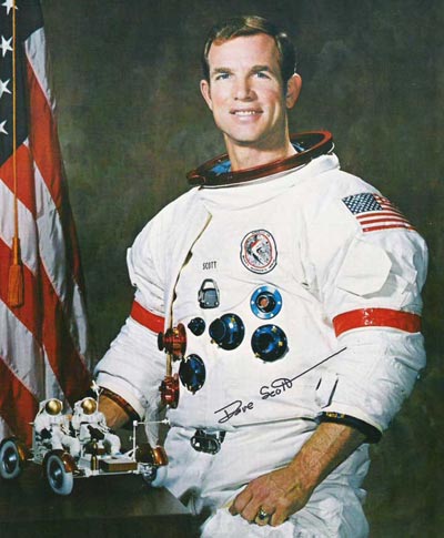 1932年6月6日,戴維·斯科特出生在美國德克薩斯州的圣安東尼。他先后獲得美國軍事學(xué)院科學(xué)學(xué)士學(xué)位,麻省理工學(xué)院科學(xué)碩士學(xué)位;他還畢業(yè)于空軍試飛學(xué)院。1963年加入美國國家航空航天局。在執(zhí)行阿波羅15號(hào)任務(wù)之前,戴維?斯科特曾飛行過Gemini任務(wù),這是衛(wèi)星空中對接的首次任務(wù);他還在1969年作為阿波羅9號(hào)成員繞月飛行。