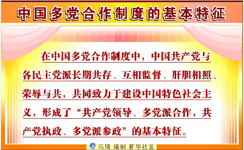 中國(guó)多黨合作制度中包括中國(guó)共產(chǎn)黨和八個(gè)民主黨派。八個(gè)民主黨派是中國(guó)國(guó)民黨革命委員會(huì)、中國(guó)民主同盟、中國(guó)民主建國(guó)會(huì)、中國(guó)民主促進(jìn)會(huì)、中國(guó)農(nóng)工民主黨、中國(guó)致公黨、九三學(xué)社、臺(tái)灣民主自治同盟。中國(guó)人民政治協(xié)商會(huì)議(以下簡(jiǎn)稱人民政協(xié))是中國(guó)共產(chǎn)黨領(lǐng)導(dǎo)的多黨合作和政治協(xié)商的重要機(jī)構(gòu)。在中國(guó)多黨合作制度中,中國(guó)共產(chǎn)黨與各民主黨派長(zhǎng)期共存、互相監(jiān)督、肝膽相照、榮辱與共,共同致力于建設(shè)中國(guó)特色社會(huì)主義,形成了“共產(chǎn)黨領(lǐng)導(dǎo)、多黨派合作,共產(chǎn)黨執(zhí)政、多黨派參政”的基本特征。中國(guó)多黨合作制度在中國(guó)的政治和社會(huì)生活中顯示出獨(dú)特的政治優(yōu)勢(shì)和強(qiáng)大的生命力,發(fā)揮了不可替代的重大作用。