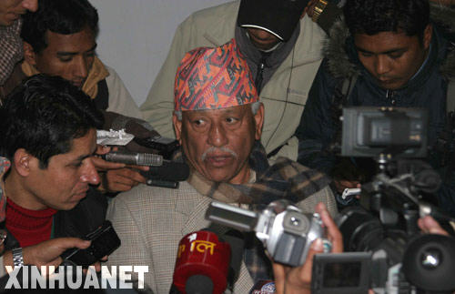 12月23日深夜,七黨聯(lián)盟中尼泊爾大會黨的高級領(lǐng)導(dǎo)人阿爾瓊·納爾辛格(中)在首都加德滿都出席七黨聯(lián)盟領(lǐng)導(dǎo)人會議后接受記者采訪。尼泊爾執(zhí)政的七黨聯(lián)盟領(lǐng)導(dǎo)人在會議上簽署了23點協(xié)議,從而結(jié)束了持續(xù)數(shù)月的政治僵局,為順利舉行擬議中的制憲會議選舉鋪平了道路。新華社發(fā)(高塔姆攝)