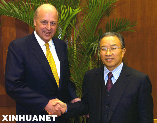 1月17日,第五次中美戰(zhàn)略對話在貴陽舉行。中國外交部副部長戴秉國與美國常務(wù)副國務(wù)卿內(nèi)格羅蓬特共同主持對話。對話為期兩天,雙方將就中美關(guān)系及共同關(guān)心的重大國際和地區(qū)問題深入交換意見。這是中國外交部副部長戴秉國與美國常務(wù)副國務(wù)卿內(nèi)格羅蓬特握手。新華社記者 侯少華 攝