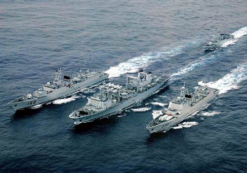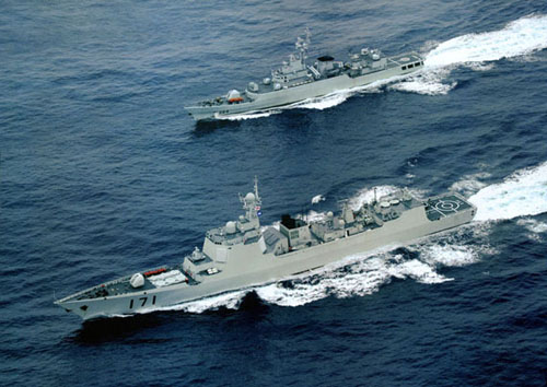 中國海軍新型防空驅(qū)逐艦與護(hù)衛(wèi)艦編隊(duì)航行 [資料圖片]