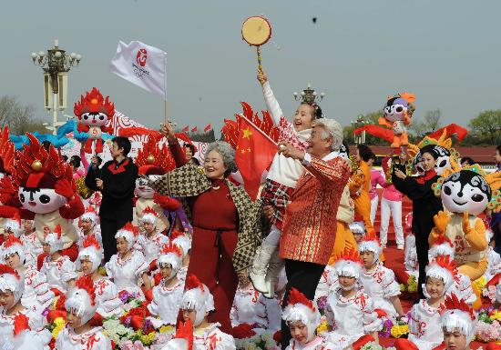 3月31日,北京2008年奧運(yùn)會(huì)圣火歡迎儀式暨火炬接力啟動(dòng)儀式在天安門(mén)廣場(chǎng)舉行。這是儀式開(kāi)始前的表演。新華社記者李學(xué)仁攝(來(lái)源:新華網(wǎng))