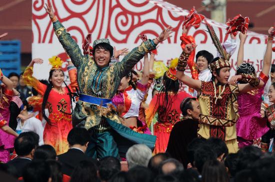 圖文-奧運火炬接力啟動儀式 民族舞蹈歡迎圣火