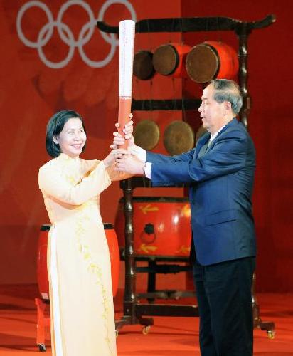 奧運圣火傳遞在胡志明市舉行 李炳華贈送火炬