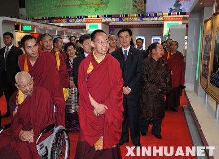 5月4日,第十一世班禪額爾德尼·確吉杰布來到北京民族文化宮,參觀正在這里舉辦的“西藏今昔”大型主題展。 新華社記者劉建生攝