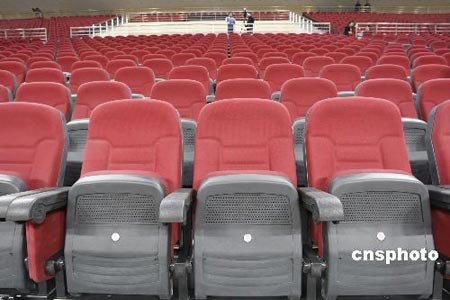 2月19日,北京五棵松2008年北京奧運(yùn)會籃球館場內(nèi)座椅。五棵松籃球館被譽(yù)為“黃金甲”,將承辦北京奧運(yùn)籃球賽事。據(jù)工作人員介紹,作為奧運(yùn)會籃球比賽場館,也是亞洲第一座NBA風(fēng)格的體育館,這座場館出自休斯敦火箭主場設(shè)計師之手,完全按照NBA的設(shè)計進(jìn)行改造。整個體育館內(nèi)共有18700個席位,包括2500個貴賓席、9600個底層座位和48個包廂,座椅的設(shè)計都采用NBA式的軟座,看臺上的過道窄而多,這一點(diǎn)與火箭的豐田中心非常相似。比賽期間,場館內(nèi)還設(shè)有兩個餐廳以及商鋪,這一點(diǎn)都和NBA的球場無異。不僅場地、座椅是NBA風(fēng)格的,就連場館包廂前的走廊走向,都與NBA場館非常相似。球場將在4月份迎來“好運(yùn)北京”的測試賽,這也將是體育館內(nèi)的首次比賽。