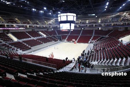 2月19日,北京五棵松2008年北京奧運會籃球館場內(nèi)座椅。五棵松籃球館被譽為“黃金甲”,將承辦北京奧運籃球賽事。據(jù)工作人員介紹,作為奧運會籃球比賽場館,也是亞洲第一座NBA風(fēng)格的體育館,這座場館出自休斯敦火箭主場設(shè)計師之手,完全按照NBA的設(shè)計進行改造。整個體育館內(nèi)共有18700個席位,包括2500個貴賓席、9600個底層座位和48個包廂,座椅的設(shè)計都采用NBA式的軟座,看臺上的過道窄而多,這一點與火箭的豐田中心非常相似。比賽期間,場館內(nèi)還設(shè)有兩個餐廳以及商鋪,這一點都和NBA的球場無異。不僅場地、座椅是NBA風(fēng)格的,就連場館包廂前的走廊走向,都與NBA場館非常相似。球場將在4月份迎來“好運北京”的測試賽,這也將是體育館內(nèi)的首次比賽。