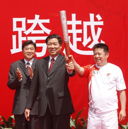 福建省委常委廈門市委書記何立峰將圣火傳遞給前乒乓球奧運冠軍郭躍華
