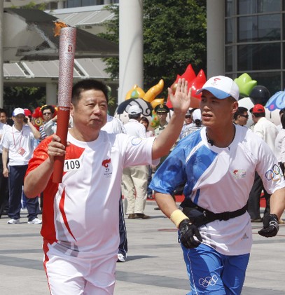 中國日報網(wǎng)環(huán)球在線消息:2008年5月12日中午,北京奧運圣火從泉州到達福建境內(nèi)傳遞的第三站廈門。14時左右,在廈門國際會展中心,隨著2008只和平鴿飛向天空,52歲的前著名乒乓球世界冠軍郭躍華從廈門市委書記何立峰手中接過火炬,領(lǐng)跑第一棒,奧運火炬?zhèn)鬟f廈門站“和諧之旅”正式開始。