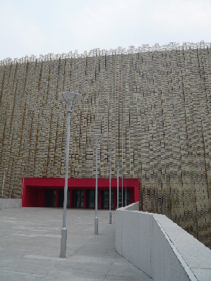 (五棵松籃球館的外觀,據(jù)說晚上燈亮時看上去很現(xiàn)代。攝影:中國日報網(wǎng) 康娟)