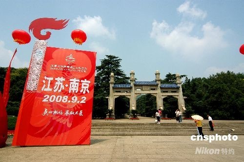 2008年9月1日,北京殘奧會(huì)火炬接力南京站的準(zhǔn)備工作一切就緒。中新社發(fā) 劉建民 攝