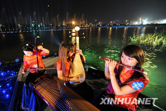 9月14日,“祥云小屋”的工作人員在聯(lián)歡會(huì)上演奏。當(dāng)日,在奧林匹克中心區(qū),“祥云小屋”的工作人員在殘奧會(huì)圣火與中秋皓月相互輝映下,舉行中秋聯(lián)歡會(huì),共敘“中國故事”,歡度中秋佳節(jié)。新華社記者 李紫恒攝
