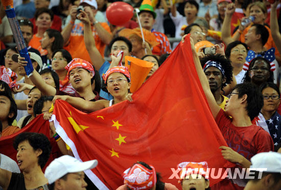 9月14日,在中國農(nóng)業(yè)大學(xué)體育館舉行的北京2008年殘奧會(huì)坐式女排決賽賽場(chǎng)邊,觀眾為運(yùn)動(dòng)員加油助威。當(dāng)日,中國農(nóng)歷八月十五,是中華民族傳統(tǒng)節(jié)日中秋佳節(jié)