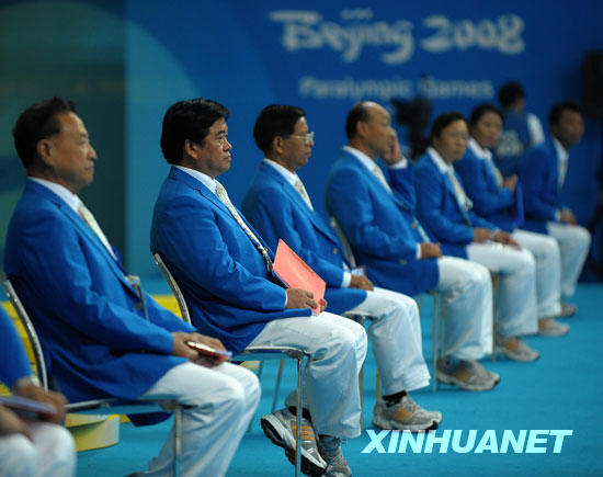 9月14日,北京2008年殘奧會(huì)游泳比賽的裁判在國家游泳中心“水立方”工作。新華社記者劉大偉攝