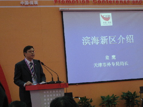 天津市外專局局長在展會(huì)上介紹濱海新區(qū)成果,招攬人才