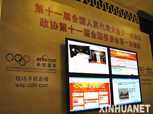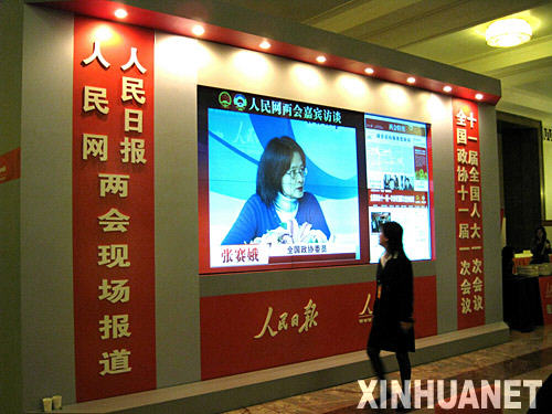 兩會(huì)期間,主要中央媒體紛紛在北京人民大會(huì)堂休息大廳“占據(jù)”有利地段,設(shè)置大屏幕,及時(shí)播報(bào)兩會(huì)最新消息。這是人民網(wǎng)設(shè)置的大屏幕(3月13日攝)。新華社記者張燕輝攝