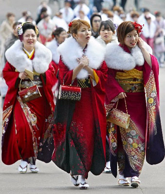 1948年,日本法律規(guī)定每年的1月15日為成人節(jié)。2000年,政府又將“成人節(jié)”改為1月的第二個(gè)星期一。成人節(jié)標(biāo)志著年輕人結(jié)束了受父母和周圍大人保護(hù)的孩子時(shí)代,開始自立并成為大人社會(huì)的一員。這一天各地要舉行成人儀式,女子穿著傳統(tǒng)的和服,男子穿傳統(tǒng)服飾或者西裝,接受市長(zhǎng)的祝福。全國(guó)各地都要舉行慶祝儀式和活動(dòng)。這個(gè)節(jié)日本該充滿快樂(lè),然而總有一些新“成人”用鬧事的形式證明“自己長(zhǎng)大了”,有人甚至因?yàn)榇蚣芏窔瓦`反交通規(guī)則被警察逮捕。