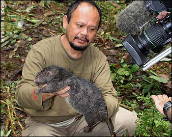 今年6月份,來自印度尼西亞科學(xué)院和一個名為“保護國際”的生物多樣性保護組織的科學(xué)家們深入到位于巴布亞東部的福賈山脈,展開此次科學(xué)考察活動。一位參加考察的科學(xué)家表示:“巨鼠的個頭有城市里普通老鼠的5倍大,它對于人類沒有恐懼感,經(jīng)常明目張膽地在帳篷中來回穿梭?!?/p>