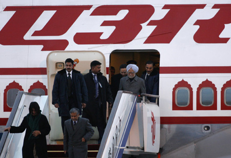 中國(guó)日?qǐng)?bào)網(wǎng)環(huán)球在線消息:應(yīng)國(guó)務(wù)院總理溫家寶邀請(qǐng),印度總理曼莫漢·辛格于1月13日早晨抵達(dá)北京,開始對(duì)中國(guó)進(jìn)行為期3天的正式訪問。
