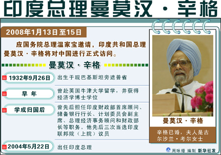 此次訪問是辛格于2004年任印度總理后首次訪華。訪問期間,國(guó)家主席胡錦濤、全國(guó)人大常委會(huì)委員長(zhǎng)吳邦國(guó)將分別會(huì)見辛格,國(guó)務(wù)院總理溫家寶還將同他舉行會(huì)談。