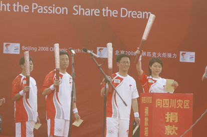龍巖站第40號火炬手華僑大學(xué)菲律賓僑生陳思思得知四川汶川發(fā)生7.8級地震時,非常震驚和擔(dān)心。她希望大家發(fā)揮人文奧運(yùn)精神,奉獻(xiàn)自己的愛心,鼓勵災(zāi)區(qū)人民樹立信心奮起抗災(zāi)。她在長汀慶典活動上代表廣大火炬手向?yàn)?zāi)區(qū)捐了款。