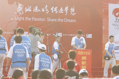 奧運(yùn)火炬手在慶典現(xiàn)場捐款 攝影 胡美東