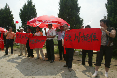 革命老區(qū)古田鎮(zhèn)人民希望汶川挺住攝影 胡美東