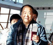 莫言現(xiàn)身北京首都機(jī)場(chǎng)