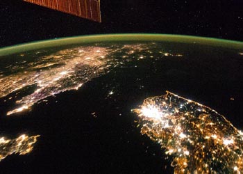 朝鮮半島夜晚燈光對(duì)比明顯 南邊燈火通明北邊漆黑一片
