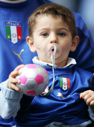 A fan waits for the start of the Group E World Cup 2006 soccer match between Italy and the Czech Republic in Hamburg June 22, 2006. (Reuters)