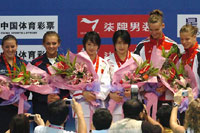 China's Guo Jingjing (R2) and Li Ting (L2) pose