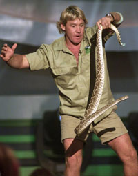 Irwin, host of Animal Planet's series "The Crocodile Hunter", holds
