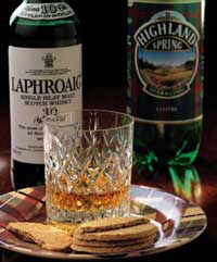 Whisky, or uisge beatha, water of life in Gaelic, is the national drink of Scotland. Whisky has been produced in Scotland since the fifteenth century. For a long period of time, the distilling of whisky was illegal, the law achieving nothing but driving stills underground where illicit distilling went on. In 1823, the production and selling of whisky was legalized and today the drink is Scotland’s chief export. Many of today’s huge distilleries are built on the same spot as the original illegal stills, using the same source of water as before. The quality of the water is considered the crucial element in the making of a good whisky. Many distilleries are therefore situated in the Highlands, taking advantage of the clear mountain springs.