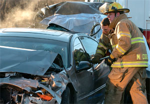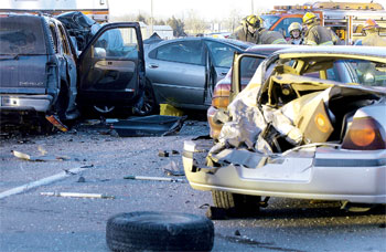 | 美國(guó)救援人員在車禍現(xiàn)場(chǎng)搶救傷員。 |