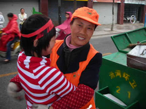 志愿者熱情擁抱環(huán)衛(wèi)工人 |