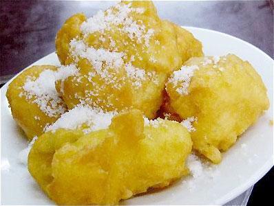 鍋內(nèi)倒花生油或生菜油,也可用牛油。但不宜用豆油或芝麻油,因?yàn)楹髢煞N油容易抵消奶油味,旺火燒至冒煙后,改用小火,此時(shí)將揉勻攪拌好的面團(tuán),500克分成40個(gè)均勻小球,人油鍋前用手摁成圓餅,逐個(gè)下人油中,待餅膨起如球狀,并呈金黃色時(shí)撈出,滾上白糖即成。