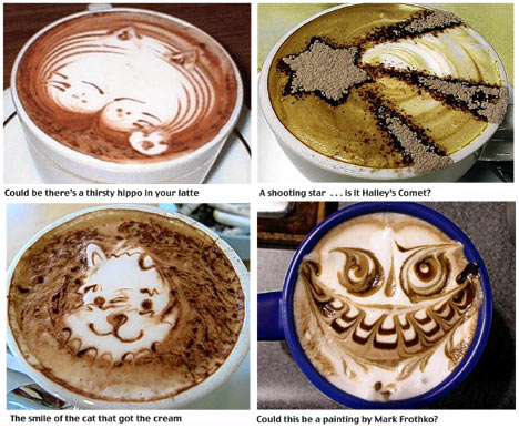 一頭饑餓的河馬(左上),一顆耀眼的星星(右上),一只貓的笑臉(左下)和一個貌似貓頭鷹的怪臉(右下)