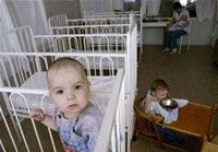 A child looks up from a cot at Hospital No. 15 in the Ural Mountains city of Yekaterinburg, Russia, February 5, 2007. [Reuters]