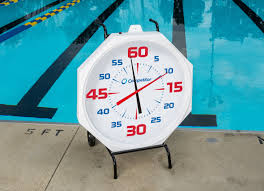 在游泳訓(xùn)練當(dāng)中,泳池邊通常會(huì)有一個(gè)計(jì)時(shí)鐘(pace clock),這個(gè)鐘一般長這樣: