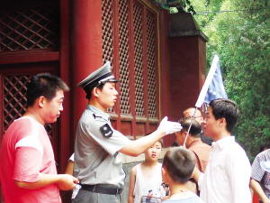 之前,記者以北大學(xué)生的身份,應(yīng)聘了某旅行社的講解員。7月6日上午記者第一次“上班”。