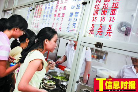 華南理工大學(xué)甘立丕副經(jīng)理告訴記者,新開學(xué)價(jià)格是肯定會(huì)調(diào)整,米飯等影響面較大的伙食目前還沒有動(dòng),但雞蛋、豬肉等菜式已經(jīng)漲了5毛左右。對此,飯?zhí)脺?zhǔn)備到國內(nèi)的四川、山東等地進(jìn)一些優(yōu)質(zhì)的鮮凍肉,這些地方的豬肉比廣東便宜4~5/元1斤,從原材料上降低成本。對于消費(fèi)能力不高的學(xué)生,可享受“8毛飯”,即學(xué)生打4兩飯花掉8毛,其他如蘿卜干、清湯之類的菜則是免費(fèi)供應(yīng)。