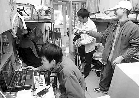 當(dāng)天,在該校男生寢室308室里,6位男生正忙著拍攝《游戲人生》的最后一組畫面。