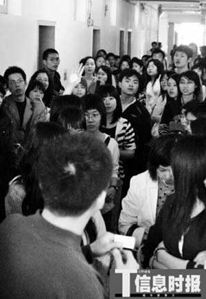 景。為求得一個資格培訓(xùn)報名號,數(shù)千名大學(xué)生提前一天通宵排隊,最終仍有很多人沒報上名。