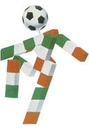 1990 Italy Ciao. A stick figure player with a football head and an Italian tricolore body. Its name is an Italian greeting.