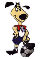 1994 United States Striker. A dog, wearing a red, white and blue football uniform with the words "USA 94".